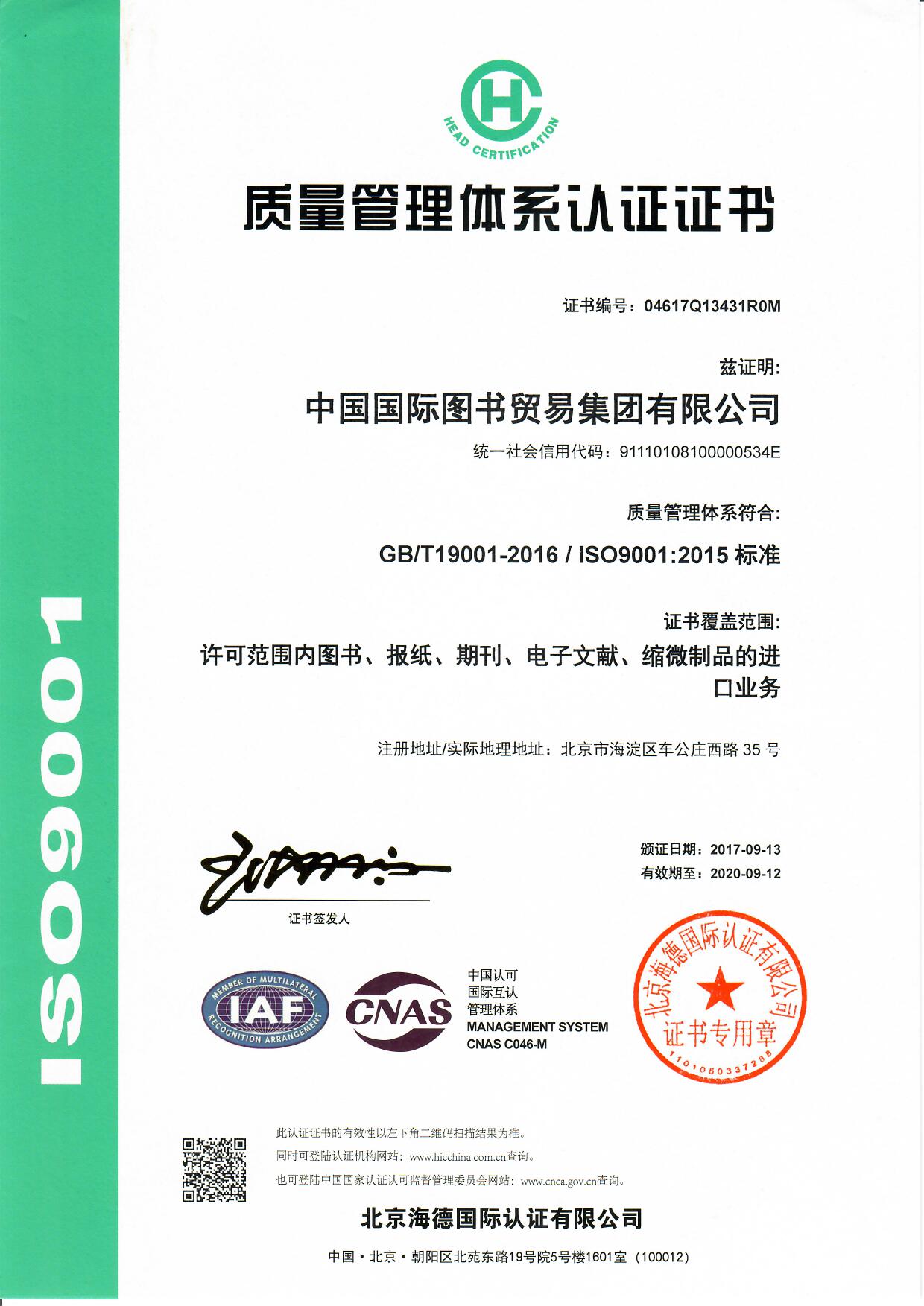 2017年9月,國圖集團(tuán)公司成功獲得ISO9001國際質(zhì)量標(biāo)準(zhǔn)體系認(rèn)證。ISO9001質(zhì)量管理體系是ISO組織(國際標(biāo)準(zhǔn)化組織)頒布的影響面最廣的一個管理體系標(biāo)準(zhǔn),是迄今為止世界上最成熟的質(zhì)量框架,不僅為質(zhì)量管理體系,也為總體管理體系設(shè)立標(biāo)準(zhǔn)。國圖集團(tuán)公司引入ISO9001質(zhì)量管理標(biāo)準(zhǔn),實現(xiàn)了傳統(tǒng)圖書貿(mào)易企業(yè)與國際先進(jìn)管理制度、機(jī)制的對接,不僅有助于樹立現(xiàn)代管理理念,提升經(jīng)營水平,降低生產(chǎn)和運營成本,擴(kuò)大品牌認(rèn)同和市場占有率,更為集團(tuán)公司實施“走出去”戰(zhàn)略,參與國際交流與競爭提供了一張質(zhì)量“通行證”。